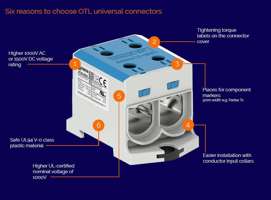 OTL Universal Connectors 2 pole for Al/Cu cables with dimensions 2.5-35mm²