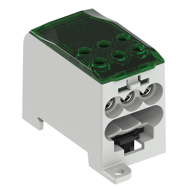 Use: OJL distribution blocks are used for branching connections in electrical devices. OJL distribution blocks can be used with aluminium and copper cables. Installation can be done with screws or onto a DIN-rail.