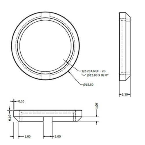 The ANB-C2-ABG-2.50 is a circular BNC nut which is 2.5mm thick and gold plated.