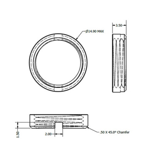 The ANB-C2-ABN-3.50 is a circular BNC nut which is 3.5mm thick and made from brass with a nickel plating.