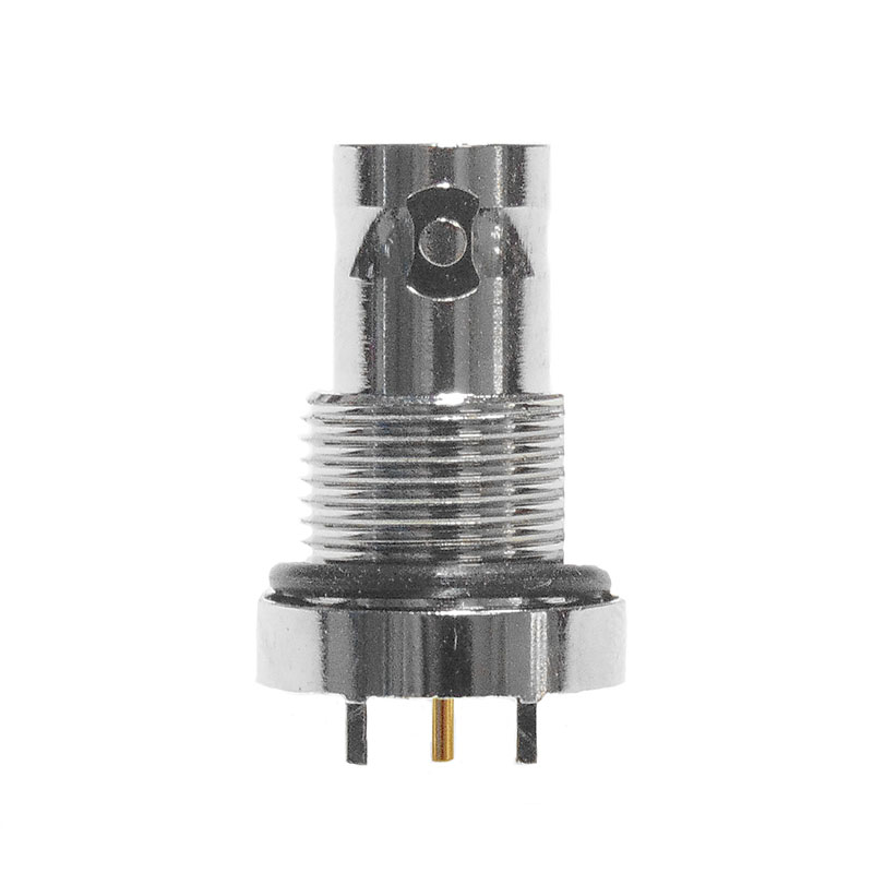This precision 75Ω BNC Connector is a right angle mounted PCB connector with a selection of different leg lengths available. It also features PathfinderTM light pipe technology which aids port identification. With a centre line of 4mm above the board, its low profile permits closer packing densities of daughter boards, which allows reduction in the bulk of routing and switching equipment.