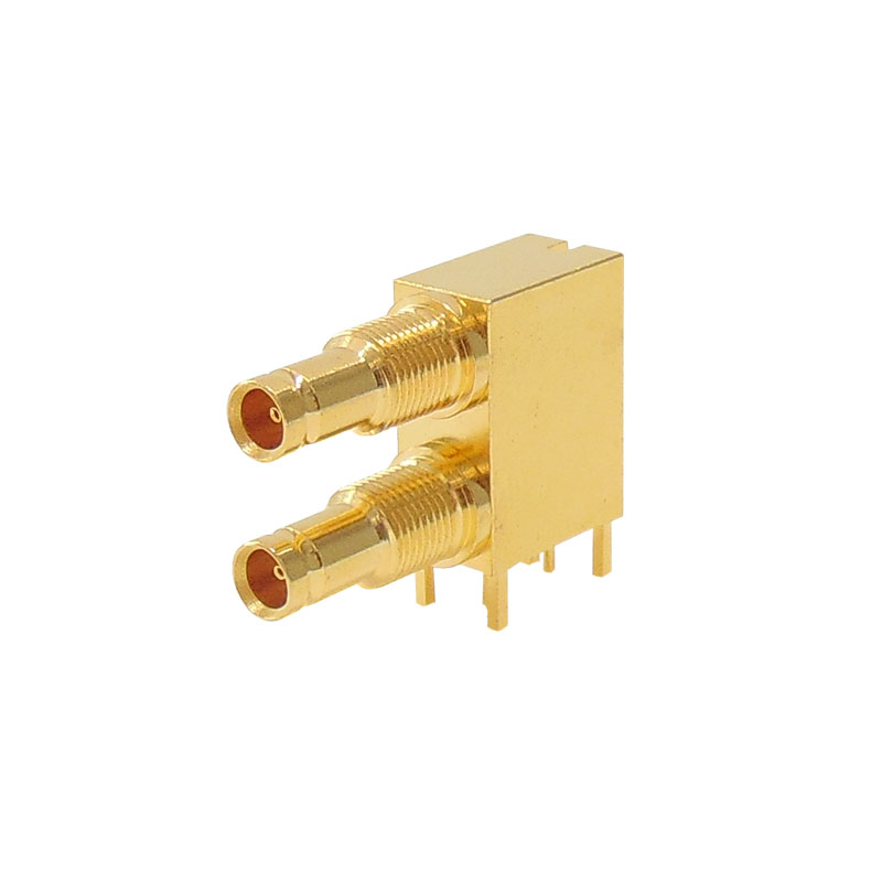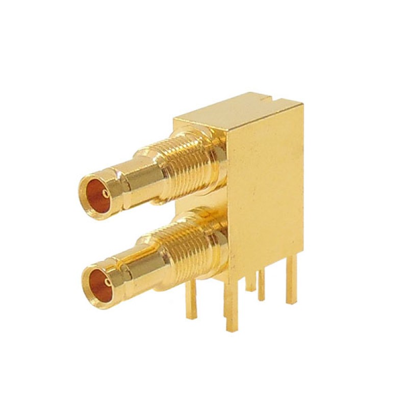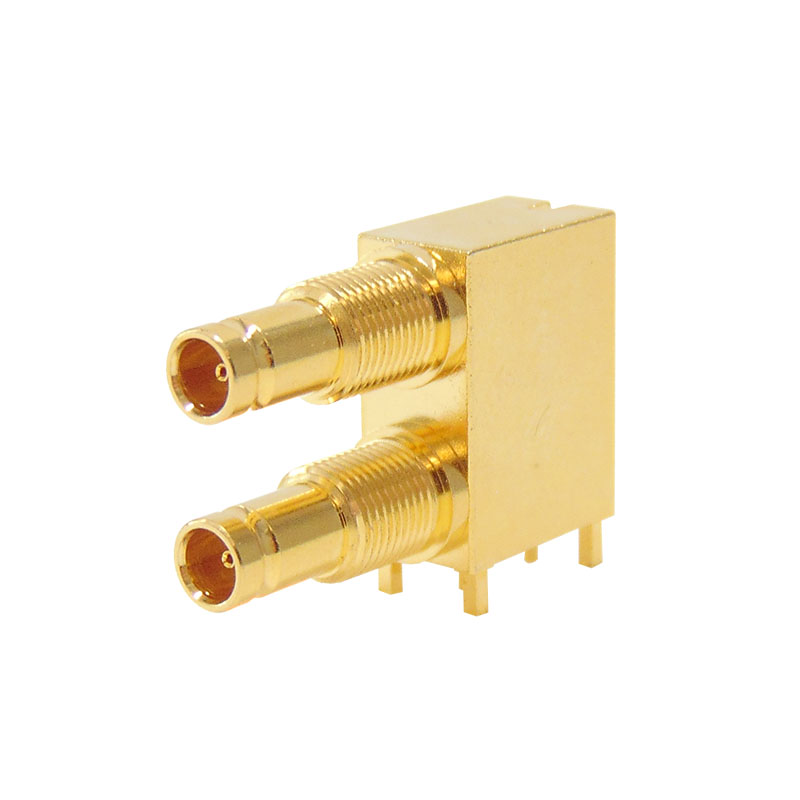 The XGS-06-RB24-GGD precision 75Ω 1.0/2.3 dual port right angle PCB mounted connector is designed for Multi Layer PCB applications which require a shorter leg length of 2.4mm. The connectors offers the full DIN 1.0/2.3 frequency of 6GHz.