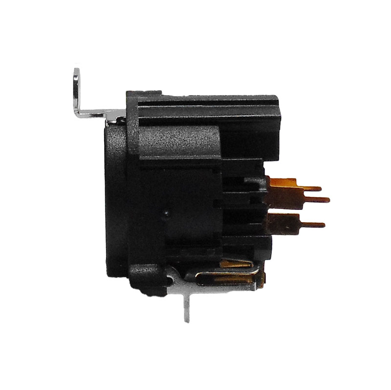 This high quality 3 pin panel mount XLR socket features a round plastic shell constructed from PA-6 glass fibre reinforced material, providing outstanding mechanical strength, dimensional stability, and long-term durability. Designed with right-angle pins for direct PCB mounting, it offers a compact and reliable interconnect solution for space-constrained applications.