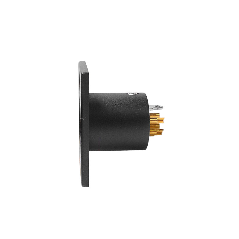 This high-quality panel mounted XLR plug, is available in 3, 4 or 5 pin configuration and features a rectangular die cast shell constructed from zinc alloy and then finished with a nickel plating, providing outstanding strength, dimensional stability, and long term durability. Designed with rear solder buckets for convenient cable termination, it offers a compact and flexible interconnect solution suitable for a wide range of applications.