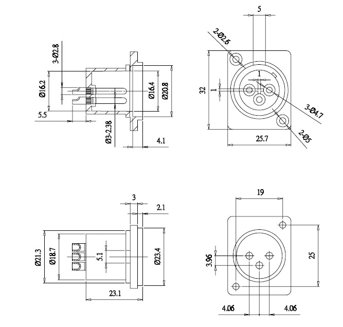 This high quality 3 pin panel mount XLR plug features a square plastic shell constructed from PA-6 glass fibre reinforced material, providing outstanding strength, dimensional stability, and long-term durability. Designed with rear solder buckets for convenient cable termination, it offers a compact and flexible interconnect solution suitable for a wide range of applications.