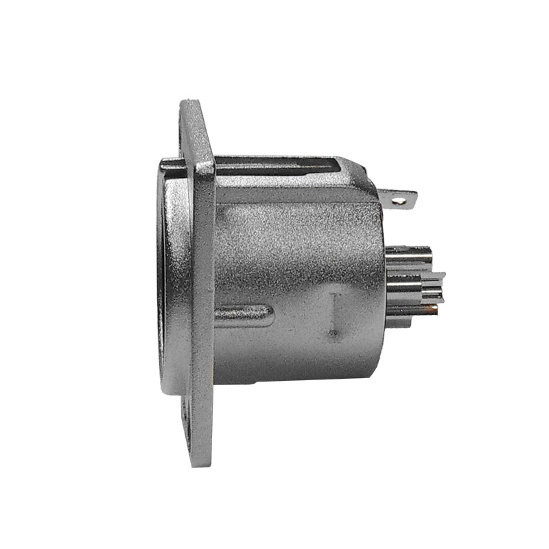 This high quality 3 pin panel mount XLR plug features a square die cast shell constructed from zinc alloy and then finished with a nickel plating, providing outstanding strength, dimensional stability, and long term durability. Designed with rear solder buckets for convenient cable termination, it offers a compact and flexible interconnect solution suitable for a wide range of applications.