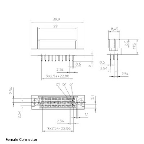 The DIN 41612 C/3 type body offers a choice of two contact arrangements over 3 rows. It is complimentary to the standard C body connector range and has an overall width of 38mm. It is available in both male and female connection types.
