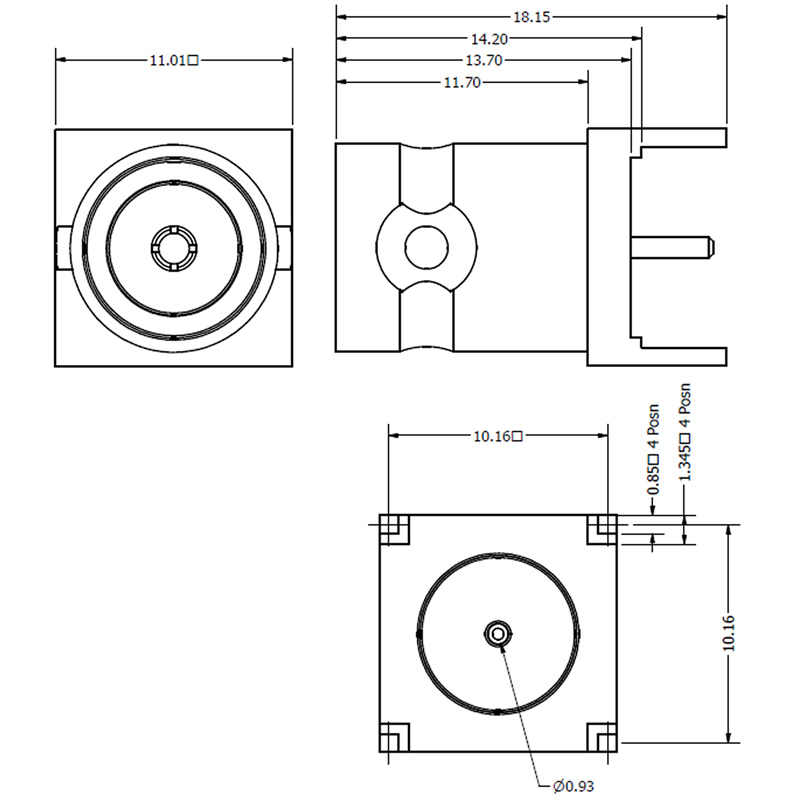 Home » Connectors » Coaxial Connectors » BNC » C-SX-068 – 3GHz Top Entry PCB Mounted BNC Connector (Square Based)