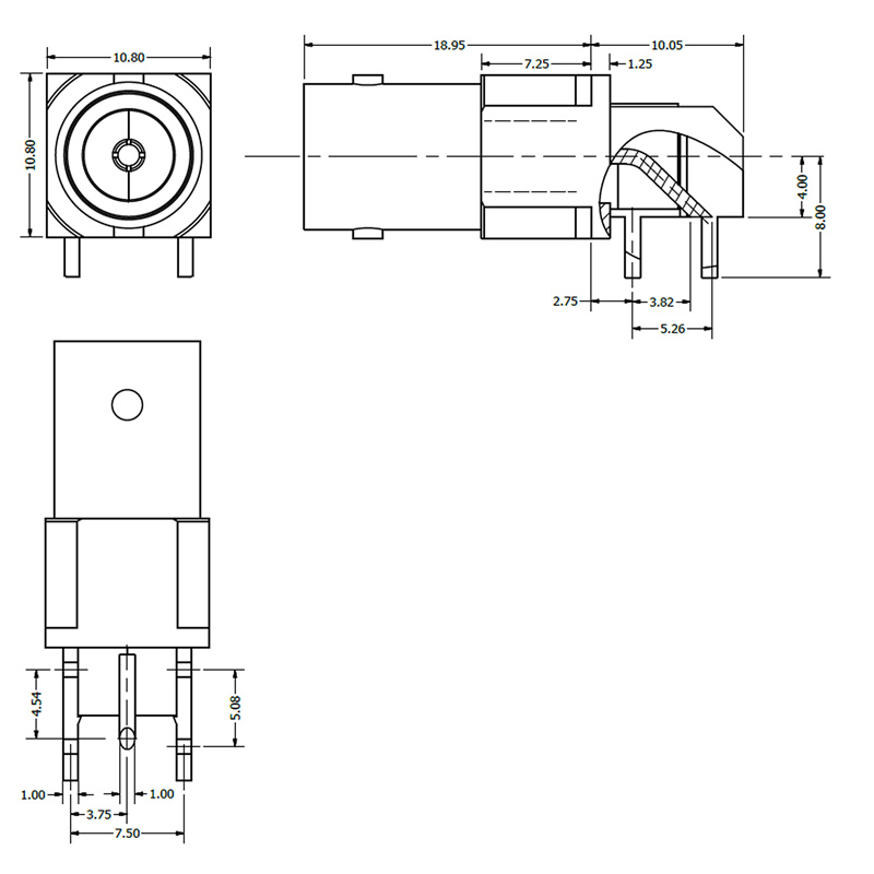 The C-SX-108G is a right angle surface mount BNC Connector. Each connector is supplied with nut and washer.