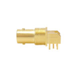 This precision 75Ω BNC Connector is a right angle mounted PCB connector for surface mount applications. It also features PathfinderTM light pipe technology which aids port identification. With a centre line of 4mm above the board, its low profile permits closer packing densities of daughter boards, which allows reduction in the bulk of routing and switching equipment.