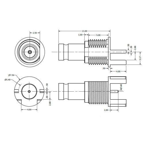 Home » Connectors » Coaxial Connectors » DIN 1.0 / 2.3 » C-SX-219GZZ – Edge Mounted DIN 1.0/2.3 Connector