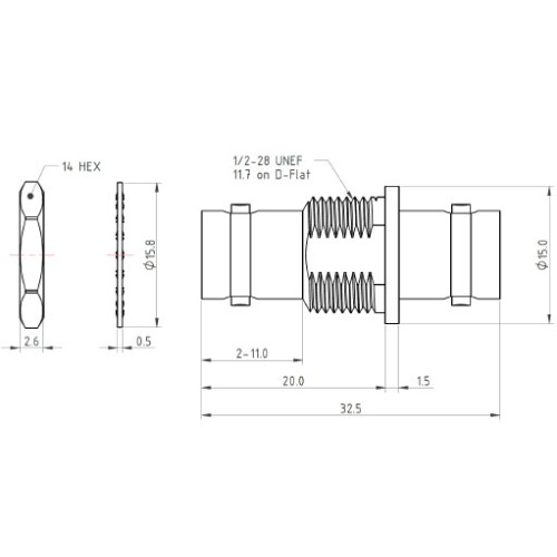 The C-SX-221GNHT is a BNC bulkhead socket to BNC socket adaptor. This is a precision 75Ω adaptor which is suitable for frequencies up to 12GHz. The adaptor is supplied with nut and washer.