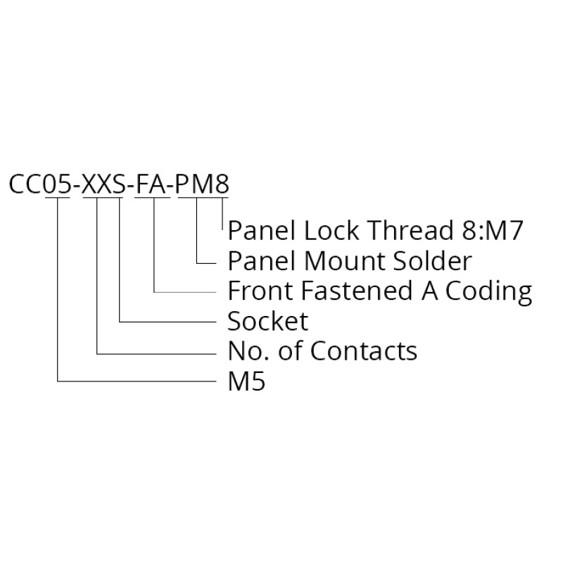 The CC05-XXS-FA-PM8 is a M5 front fastening panel mounted socket. This circular connector has an A coding, with the option of a 3 or 4 way pin assignment, with a solder bucket termination style to the rear. The connector has a waterproof rating to IP67, which protects your equipment from the ingress of water or dust. This reliable and robust miniature connector can be used in many applications including, transportation and control systems to communication and data transfer.