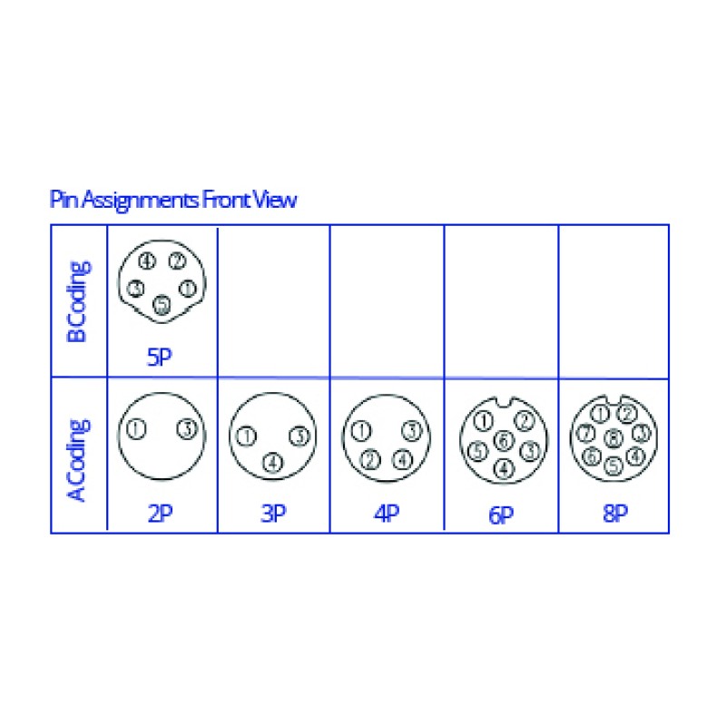 The CC08-XXS-X-MM is a M8 socket which is designed specifically for over-moulded cables. The circular connector is available in A and B coding, with a 2 to 8 way pin assignment option and features solder buckets to the rear. The connector can be mounted to wires without over-moulding but is also available as a ready made cable assembly under part number SCM08-XXSXS-XXXX for a straight cable style or SCM08-XXSXR-XXXX as a right-angle mounted cable, to your required length.