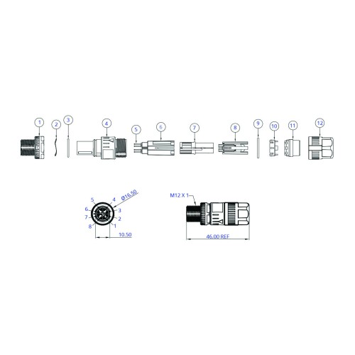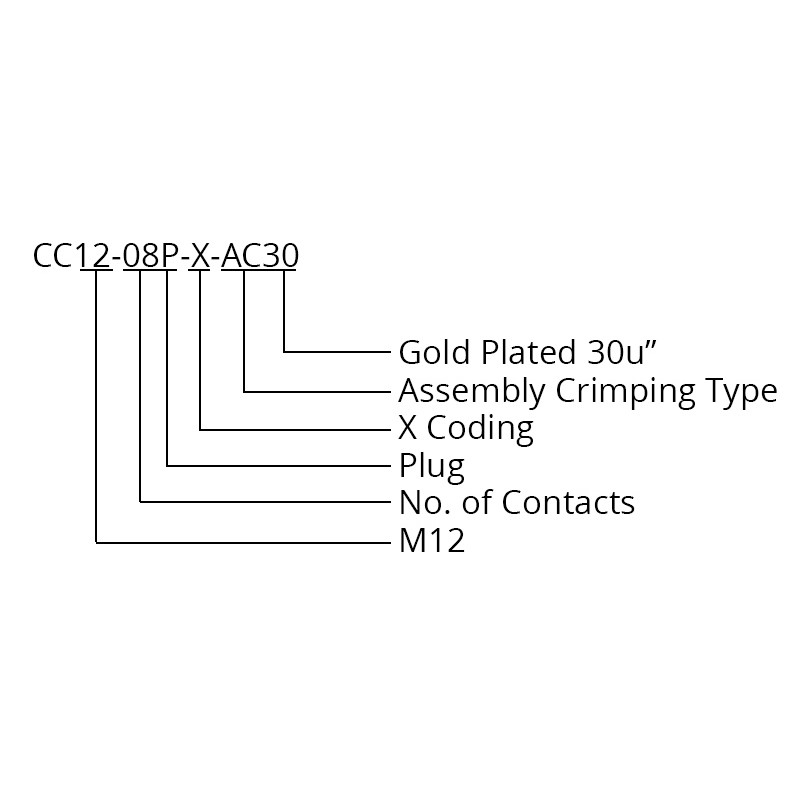 CC12-08P-X-AC30 – M12 Cable Mounted Plug (X Code)