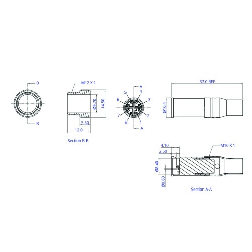 The SCM12-08PXS-XXXX is an M12 over-moulded plug cable assembly with a stub end for completion with a termination of your choice. This M12 plug is an 8 pin, X code connector with shielding. The assembly can be supplied to your required length or can be made into a bespoke assembly with terminations of your choice to the other end.