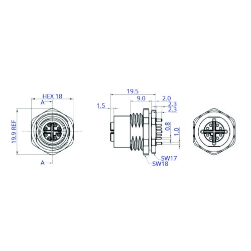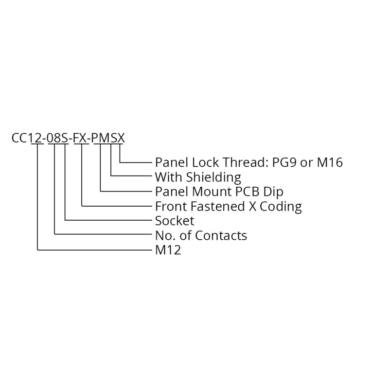 CC12-08S-FX-PBSX – M12 Front Fastening Shielded Socket (X Code)
