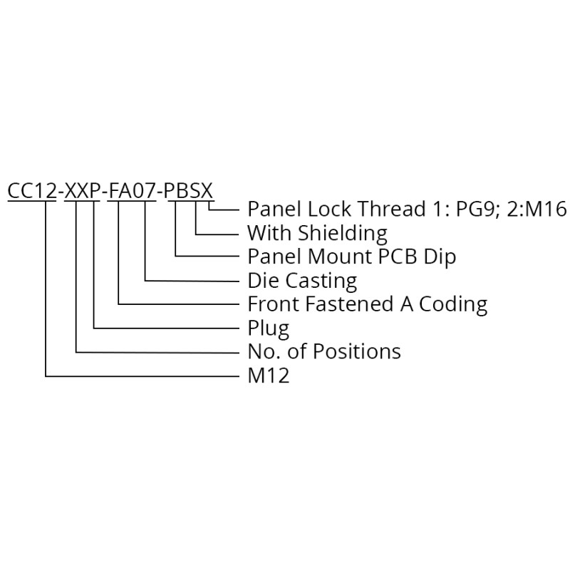 Home » Connectors » M Series Circular Connectors » M12 Circular Connectors » CC12-XXP-FA07-PBSX – M12 Front Fastening Shielded Die Cast Plug (A Code)