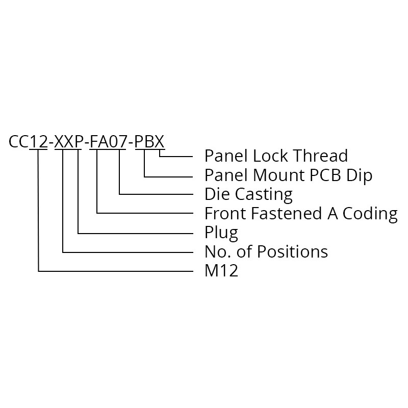 Home » Connectors » M Series Circular Connectors » M12 Circular Connectors » CC12-XXP-FA07-PBX – M12 Front Fastening Die Cast Plug (A Code)