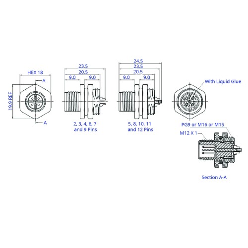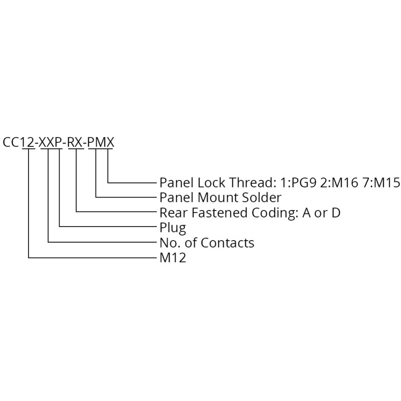 The SCA12-XXPRXX-XXXX is an M12 plug cable assembly with a stub end for completion with a termination of your choice. The M12 plug is available in an A or D coding with 2 to 12 pin options. The rear panel mount fastening is available with either a PG9 or M16 size nut. The assembly can be supplied to yor required length or can be made into a bespoke assembly with terminations of your choice to the other end.