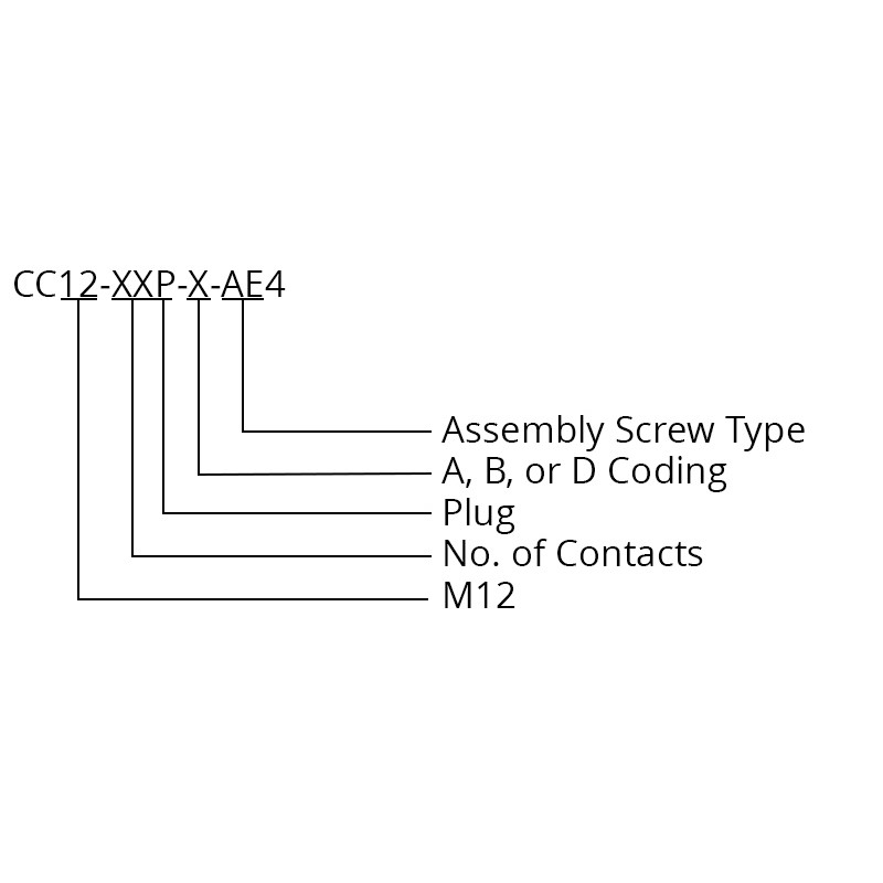 Home » Connectors » M Series Circular Connectors » M12 Circular Connectors » CC12-XXP-X-AE4 – M12 Cable Mounted Plug (A.B and D Code)