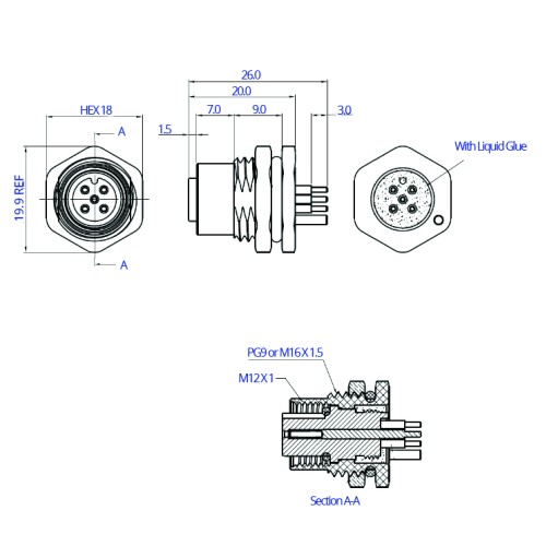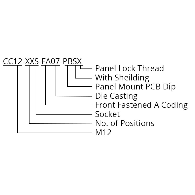Home » Connectors » M Series Circular Connectors » M12 Circular Connectors » CC12-XXS-FA07-PBSX – M12 Front Fastening Shielded Die Cast Socket (A Code)