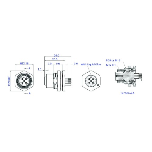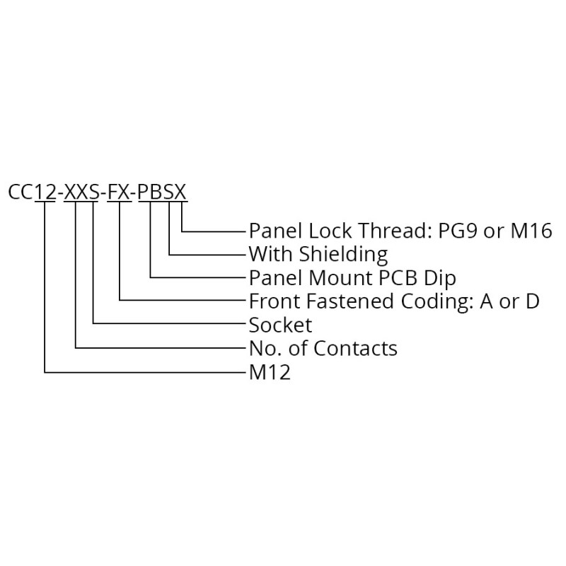 Home » Connectors » M Series Circular Connectors » M12 Circular Connectors » CC12-XXS-FX-PBSX – M12 Front Fastening Shielded Socket (A and D Code)
