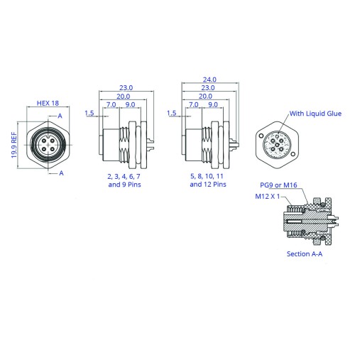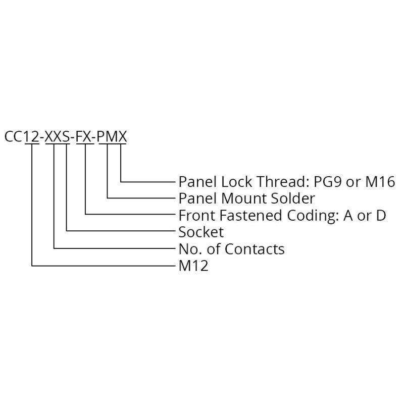 The SCA12-XXSFXX-XXXX is an M12 socket cable assembly with a stub end for completion with a termination of your choice. The M12 socket is available in an A or D coding with 2 to 12 pin options. The front panel mount fastening is available with either a PG9 or M16 size nut. The assembly can be supplied to yor required length or can be made into a bespoke assembly with terminations of your choice to the other end.