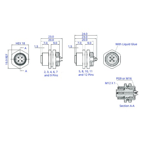 - Available with a choice of nut size, PG9 or M16