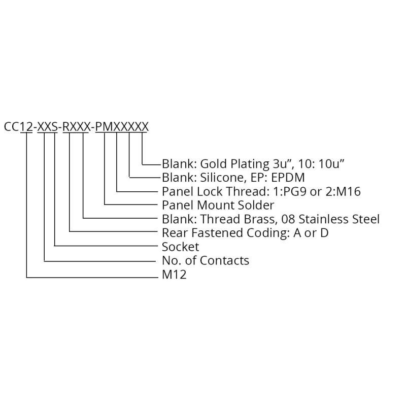 The SCA12-XXSRXX-XXXX is an M12 socket cable assembly with a stub end for completion with a termination of your choice. The M12 socket is available in an A or D coding with 2 to 12 pin options. The rear panel mount fastening is available with either a PG9 or M16 size nut. The assembly can be supplied to yor required length or can be made into a bespoke assembly with terminations of your choice to the other end.