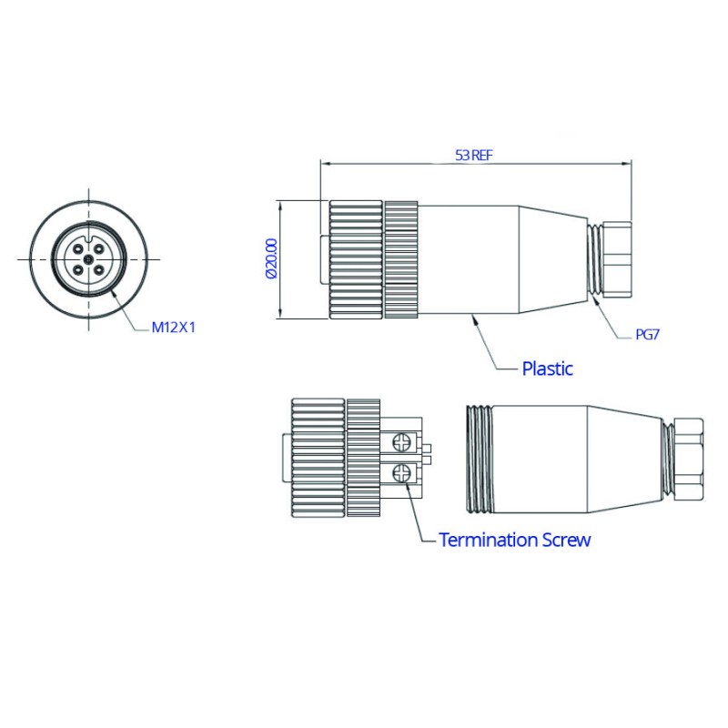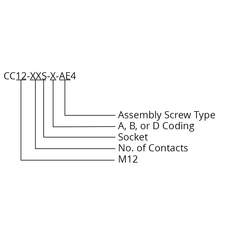 The CC12-XXS-X-AE4 is a cable-mounted M12 connector. It is available in A, B and D Coding and has a screw termination style for easy connection onto a cable of between 4 and 6mm in diameter. The connector can be purchased as a loose connector or as part of a bespoke cable assembly. This connector can be used for power or signal connections and is rated as IP67, so can be used in damp or dusty environments whilst assuring protection from the elements for your equipment.
