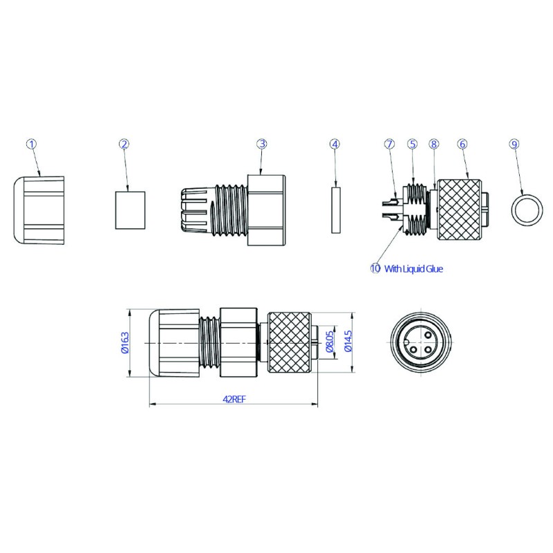 - Cable mounting for cable between 4 and 6.5mm in diameter