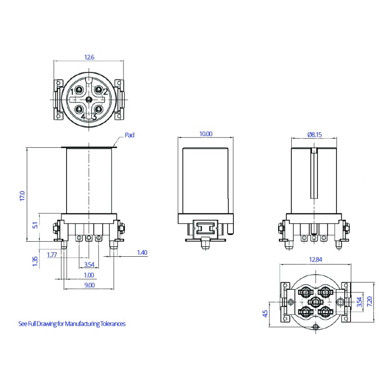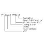 The CC12-XXS-X-SMXX-TR is an M12 receptacle available in both A and D coding. The receptacle is a surface-mounted connector with polarising pins to ensure correct deployment. The connector is available in 3 to 5 pin options and comes in tape and reel packaging for machine placement. The contacts can be ordered with either a 1μ” or 30μ” gold plating option.