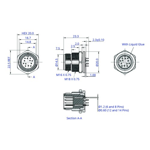 - 6, 8, 12 and 14 Pins