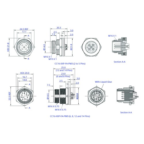 The SCA16-XXPFAX-XXXX is an M16 Plug cable assembly which comes with a stub end as standard. The front fastening connector is available in an A coding and with 2 to 14 pin options. The