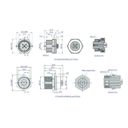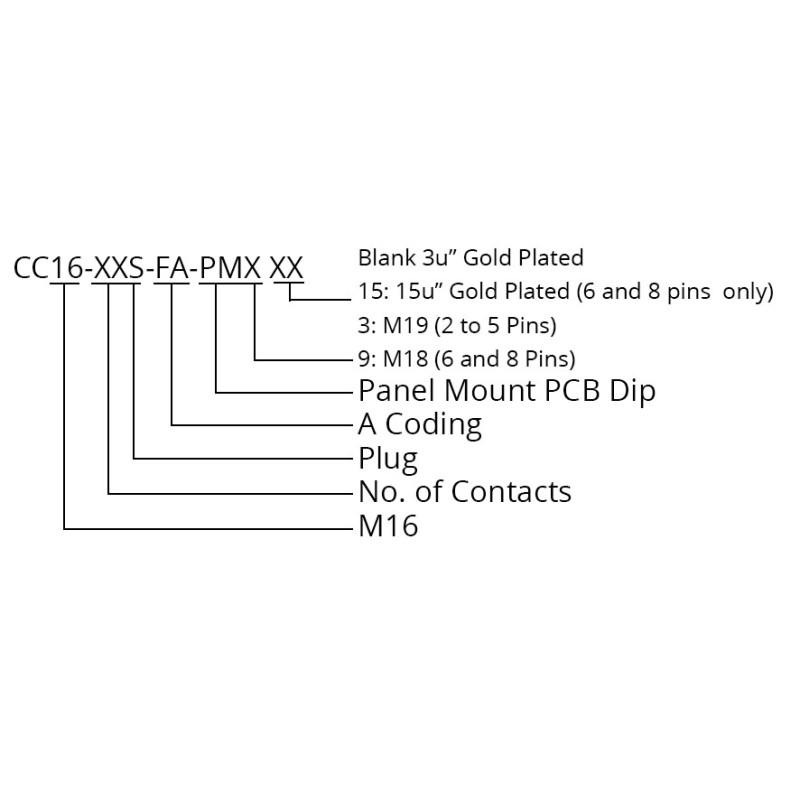 The SCA16-XXSFAX-XXXX is an M16 socket cable assembly which comes as standard with a stub end. The front fastening connector is available in an A coding and with 2 to 8 pin options. The connector is supplied with either an M18 or M19 nut, depending on the number of pins. The assembly can be supplied to your required length or can be made into a bespoke assembly with terminations of your choice to the other end.