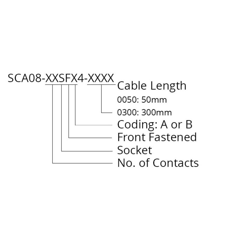 The CC08-XXS-FX-PM4 is a M8 socket with solder buckets for mounting onto a cable. The circular connector is available with 2 to 8 pins which can be used for power or signal connections. This M8 connector is front fastening with a M10 panel lock thread. This circular connector is also available as a cable assembly as part number SCA08-XXSFX4-XXXX in a length to suit your application.