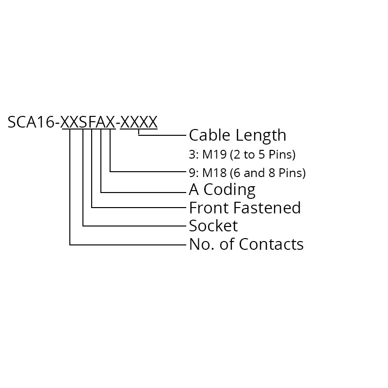 The CC16-XXS-FA-PMX is a M16 circular socket connector which is available with 2 to 8 pin options in an A coding. The connector is front fastening panel mounted and features solder buckets to the rear for mounting on cable. The connector can be purchased as a single connector or as part as a standard cable assembly (part number SCA16-XXSFAX-XXXX) or a bespoke cable assembly with different termination options.