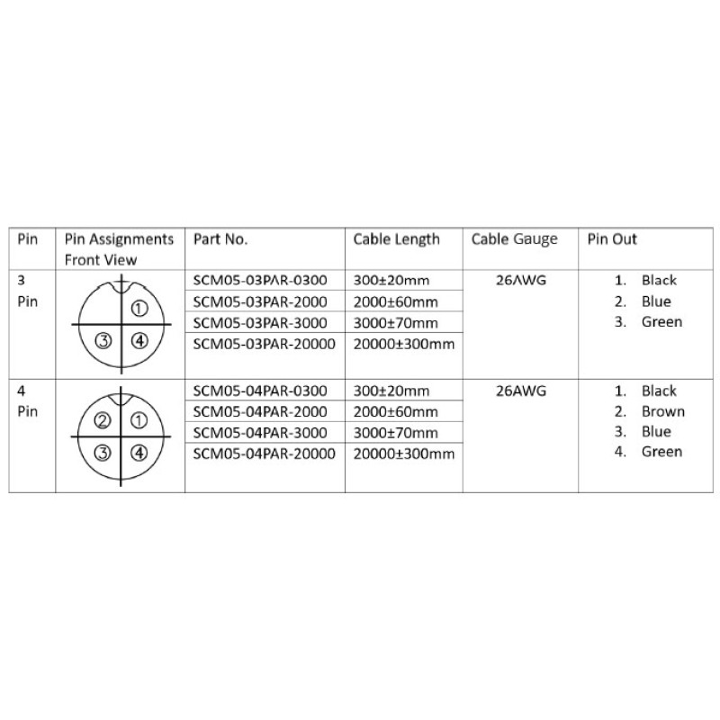 The SCM05-XXPAR-XXXX is an M5 overmoulded cable right angle plug assembly with a stub end. The plug is available with 3 or 4 pins in an A coding and the cable assembly is offered in standard lengths of 300mm, 2m, 3m and 20m. Bespoke cable assemblies of any length and with mixed or similar terminations are also available. This cable assembly offers a solution for sensor systems in demanding and harsh environments, providing speeds of up to 10Gbit/s.