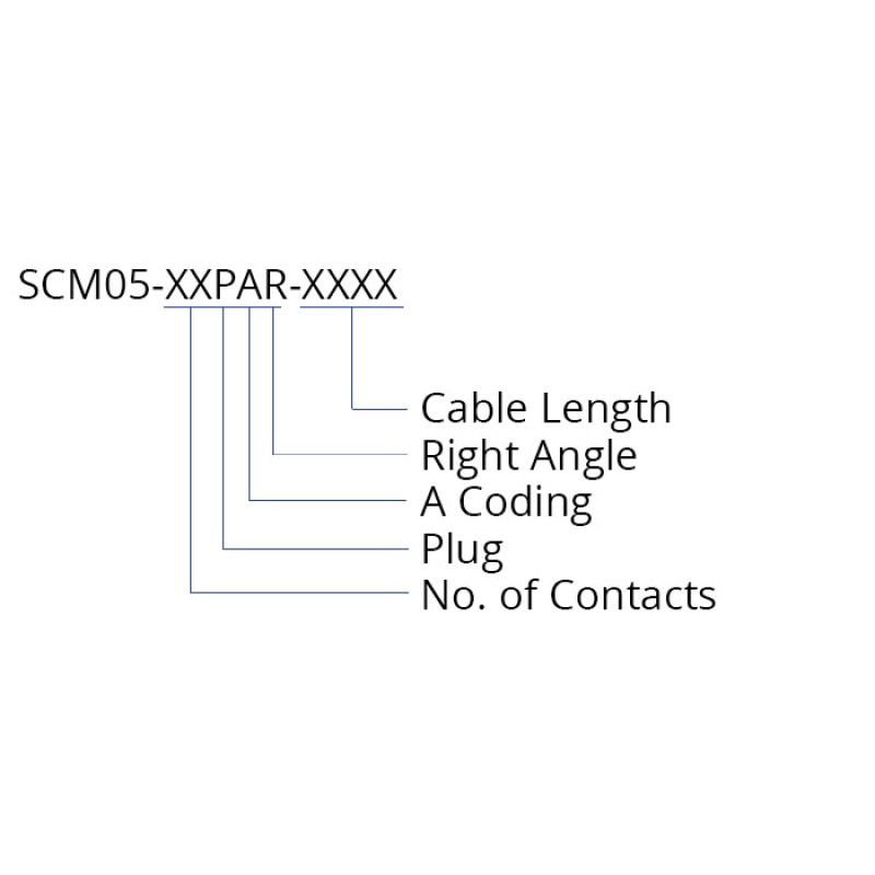 Home » Cables » M Series Connector Cable Assemblies » SCM05-XXPAR-XXXX – M5 Right Angle Over moulded Plug Cable Assembly (A Code)
