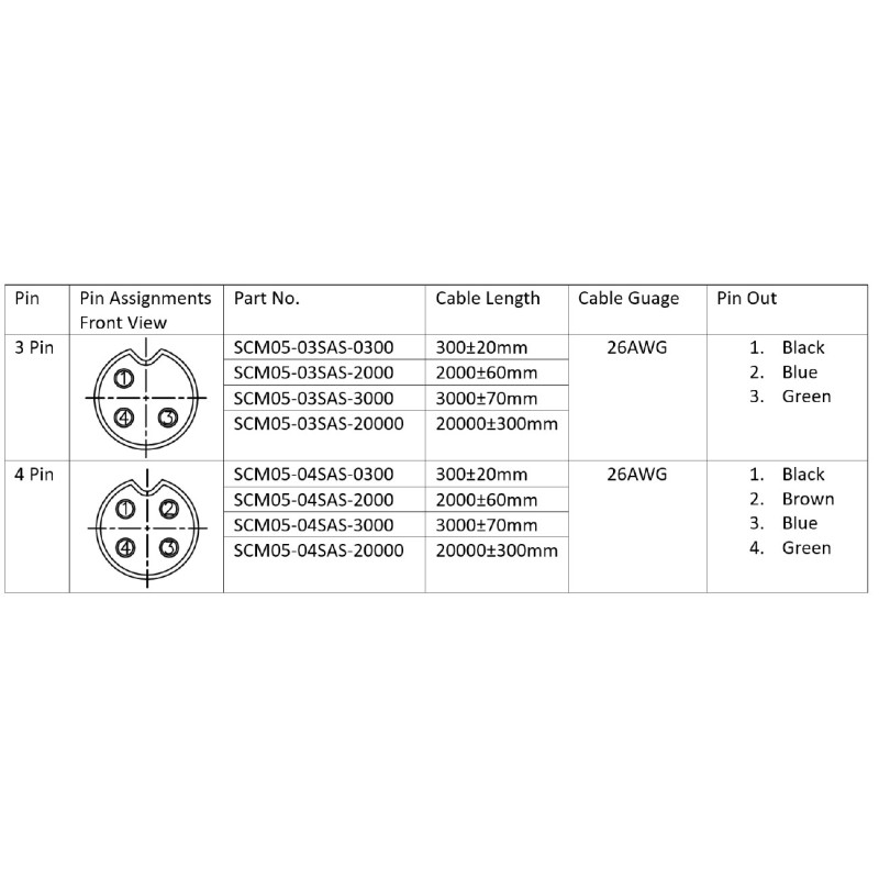 The SCM05-XXSAS-XXXX is an M5 over-moulded cable socket assembly with a stub end. The plug is available with 3 or 4 pins in an A coding and the cable assembly is offered in standard lengths of 300mm, 2m, 3m and 20m. Bespoke cable assemblies of any length and with mixed or similar terminations are also available. This cable assembly offers a solution for sensor systems for demanding and harsh environments, providing speeds of up to 10Gbit/s.