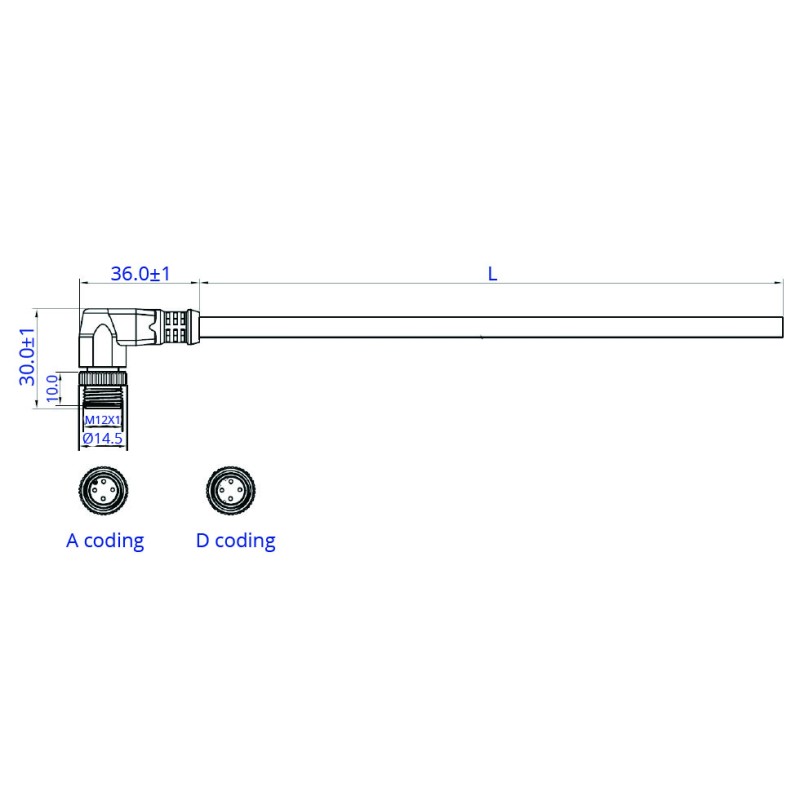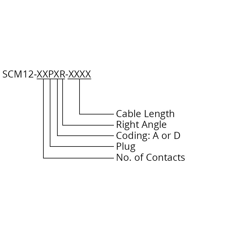 Home » Cables » M Series Connector Cable Assemblies » SCM12-XXPXR-XXXX – M12 Right Angle Over-moulded Plug Cable Assembly (A or D Code)