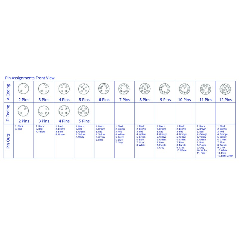 | Current Rating | 4A AC/DC (2 to 5 Pins), 2A AC/DC (6 to 8 Pins), 1.5A AC/DC (9 to 12 Pins) |