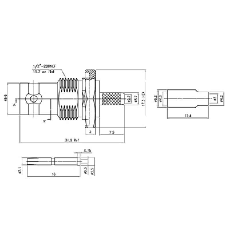 The XBD-1014-NGAF is a bulkhead mounting socket for cable group AF, which includes RG179 and is suitable for frequencies up to 1GHz and with an impedance of 75Ω. The connector is supplied with nut and washer.