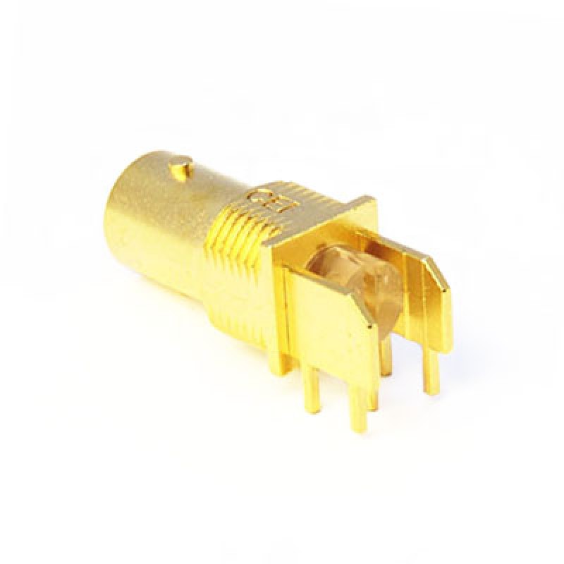 This precision 75Ω BNC Connector is a right angle mounted PCB connector with a selection of different leg lengths available. It also features PathfinderTM light pipe technology which aids port identification. With a centre line of 4mm above the board, its low profile permits closer packing densities of daughter boards, which allows reduction in the bulk of routing and switching equipment.