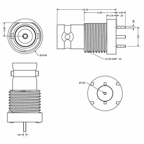 Home » Connectors » Coaxial Connectors » BNC » XBS-06-TB35-NN – Top Entry Bulkhead BNC Connector