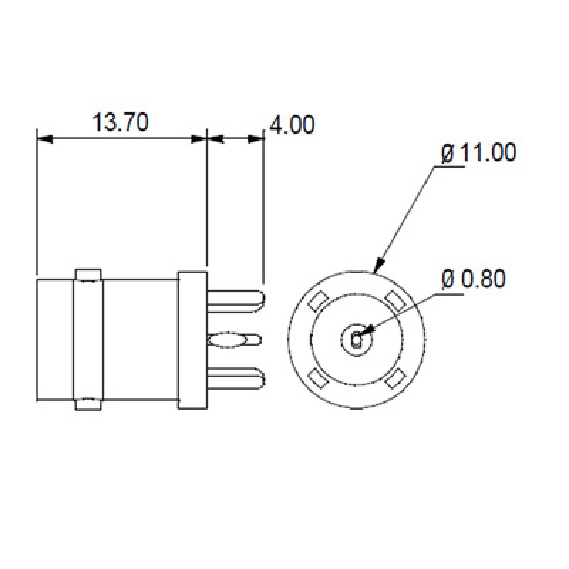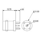 The XBT-1052-NGAY is a top entry PCB mounted BNC socket and is suitable for frequencies up to 1GHz. The connector has an extended insulator which protects the contact and is recommended for PCB’s with a thickness of 3.6mm.