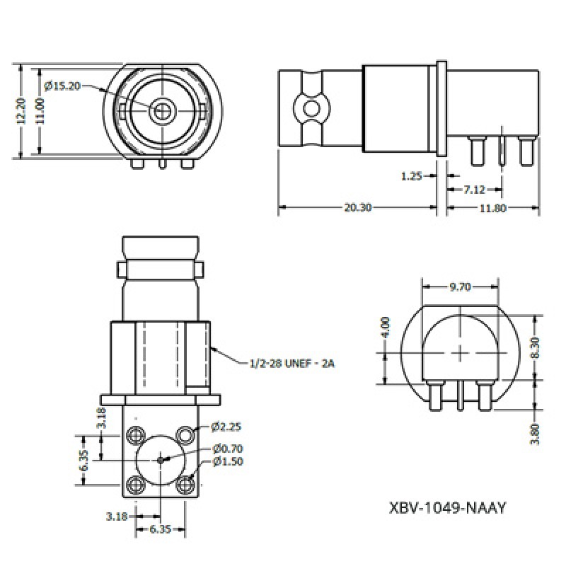 The XBV-1049-NAXX is a right angle PCB mounted BNC socket.