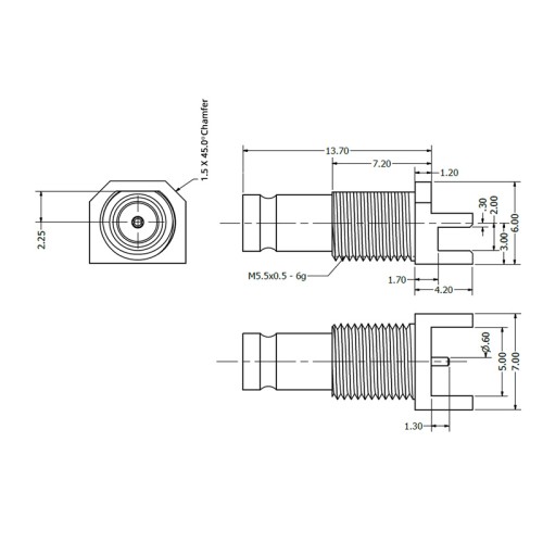 Home » Connectors » Coaxial Connectors » DIN 1.0 / 2.3 » XGS-06-EB16-GG – Edge Mounted DIN 1.0/2.3 Connector