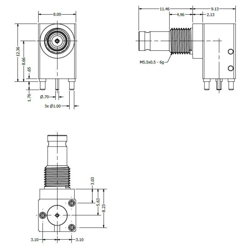 Home » Connectors » Coaxial Connectors » DIN 1.0 / 2.3 » XGS-06-RB18-NGIJX -Tall Right Angle mounted DIN 1.0/2.3 Stacking Connector